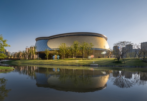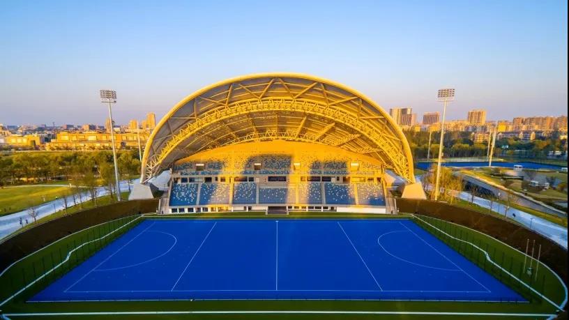 运河亚运公园位于杭州市拱墅区,项目占地约46.7万平方米,总建筑面积约18.5万平方米,绿化面积达33万平方米。以“南馆北场”布局的两座亚运场馆坐落于此。其中,位于南区、外观形似良渚文化中“玉琮”的是亚运乒乓球、霹雳舞的比赛场馆,可容纳近7000人。位于北区、形似“油纸伞”的建筑是曲棍球场,可为5000位观众提供坐席。南北区通过下穿地下广场及人行天桥有机相连、无缝衔接。